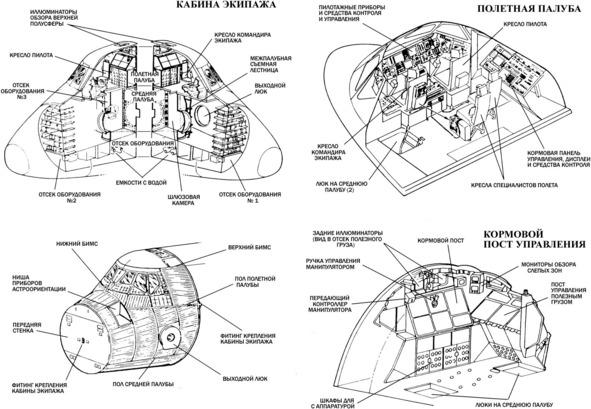 Конструкция американского шаттла, перевод американского мифотворчества описан в публикации «Орбитальный Корабль». [12] Надо обратить внимание на тот факт, что сам корпус американского аппарата имеет большие размеры: «летательный аппарат вместе с крыльями и шасси для посадки имеет длину 34,2 м, высоту 17,3 м и размах крыльев 23,8 м». [13] При этом, если скомпоновать кабину для космонавтов и двигательную установку, то весь летательный аппарат будет значительно меньше. Сам «космический ракетоплан» США своеобразная пустышка. Из этой схемы хорошо видно, что никакой капсулы для спасения экипажа в случае проблем на старте, Системы Аварийного Спасения не существовало. Такая конструкция вряд ли позволяла модернизировать «орбитальный корабль» США. Нет никаких данных о том, что в шаттлах, была создана такая система спасения. Следующая схема «Основные элементы конструкции орбитального корабля» [12] подтверждает отсутствие системы аварийного спасения (САС) в конструкции космического самолета-планера. В случае аварии экипаж был полностью обречен!