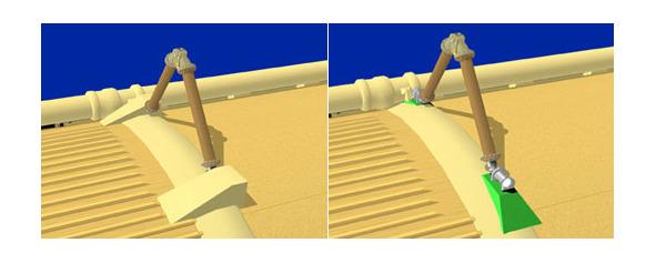 Абляционная защита теперь фигурировала в следующей формулировке: «многослойную конструкцию из углеродной ткани, пропитанной фенольной смолой». Еще одно новшество, нарушение традиции программы «Аполлон»: «Система жизнеобеспечения и терморегулирования включает герметичный объем экипажа с двухгазовой (21% кислорода и 79% азота) искусственной атмосферой при давлении 760 мм рт. ст. и температуре 18.3—26.6°С». Наконец-то свершилось. Фальсификаторы сделали хоть какие-то выводы. Выдумки об атмосфере из чистого кислорода в кабине космических аппаратов США ушли в прошлое! В конструкции шаттла США есть еще один значительный изъян. Он заключается в том, что подача топлива к двигателям шаттла производится, если верить внешнему виду всей американской конструкции, со стороны нижней части шаттла: «Бак содержит горючее (водород) и окислитель (кислород) для трёх жидкостных ракетных двигателей (ЖРД) SSME (RS-25) на орбитальном аппарате и не снабжён собственными двигателями… Топливо и окислитель из бака подаются к трём маршевым ЖРД орбитального ракетоплана (орбитера) по магистралям питания диаметром 43 см каждая, которые затем разветвляются внутри ракетоплана и подводят реагенты к каждому двигателю. Баки изготавливались компанией «Lockheed Martin». [11] Внешний бак не имеет своих отдельных двигателей, как это сделано в конструкции советского космического самолета «Буран». В нижней части находились места крепления шаттла: «Изображение ниже: фитинг сошки, который помогает прикрепить внешний резервуар к орбитальному аппарату, был переработан. В старой конструкции слева использовалась пенная рампа для предотвращения образования льда на фитинге». [9] Никаких других соединений в виде труб или шлангов между шаттлом и большим баком не наблюдалось. Они отсутствуют и в схеме. Фитинг — соединительная часть трубопровода.