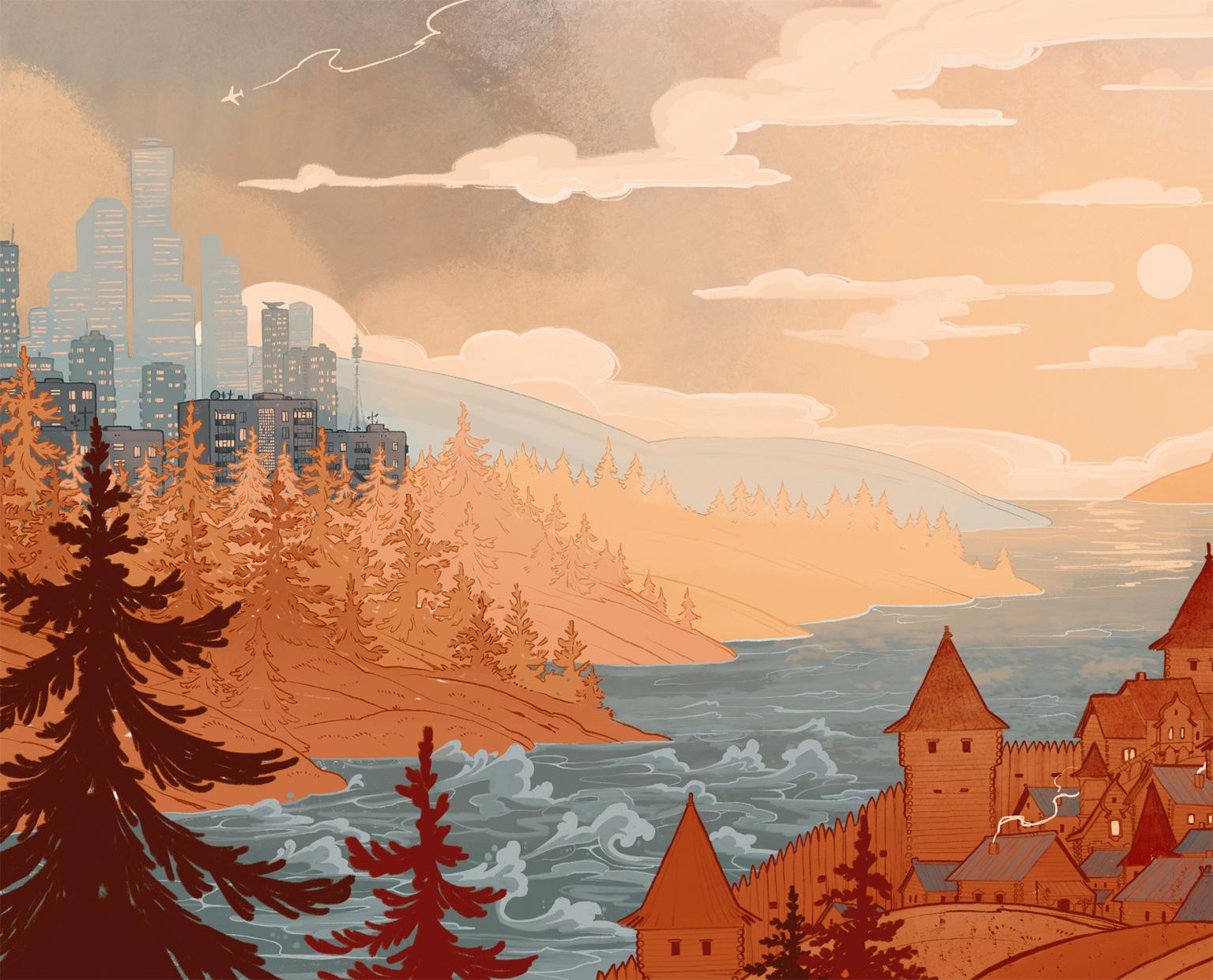 Солнце поднималось над Стремной, как и сотни лет назад, все так же играя на быстрых волнах. Оно золотило верхушки деревьев и пики сторожевых башен. То тут, то там слышались привычные звуки: крик петуха, звон колодезной цепи, скрип петель и половиц, негромкие голоса. Город просыпался, готовясь к новому дню. Новому дню новой жизни.