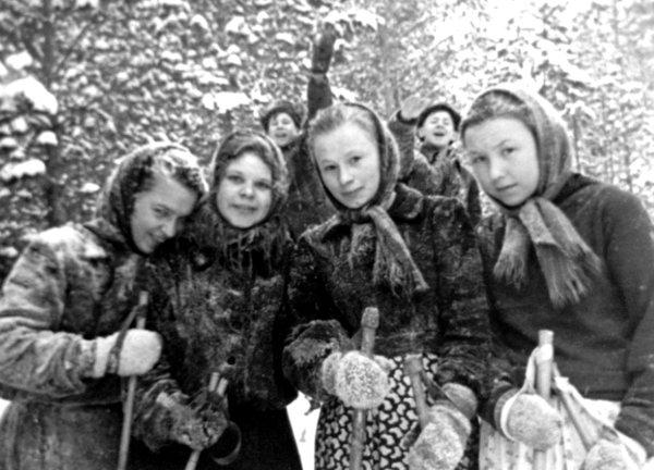 В старших классах я с успехом осваивала лыжи. Лыжи и даже лыжные ботинки особо заслуженным спортсменам, к числу которых я относилась, в школе нам выдавали, естественно, бесплатно. Я бегала на дистанции на уроках физкультуры и соревнованиях по пять, иногда, очень редко, по десять километров, помогала нашему физруку проводить соревнования. По воскресеньям мы группой уходили в леса на лыжные прогулки, катались с гор и играли в разные «снежные» игры. В будние дни я часто, придя из школы, уходила с лыжами на свою летнюю горку, осваивала, катаясь с нее, новые горные трассы. На общественной горе, там, где летом у нас была купальня, я прыгала даже через небольшой трамплин.