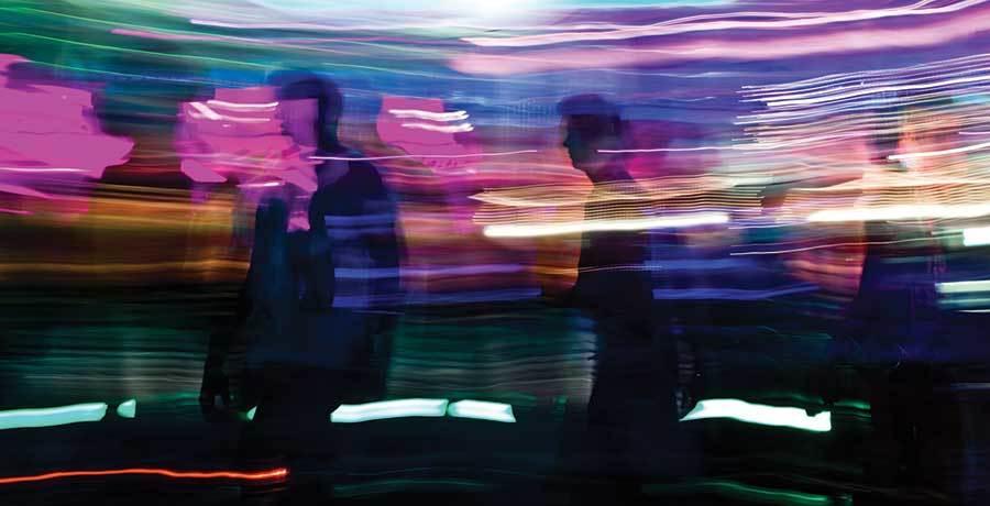 Именно понимание влияния таких изменений в настройках фотоаппарата на изображение делает результат нашей работы в какой-то степени предсказуемым. Например, синусоидальный узор на фигуре 1.5 получился в результате волнообразного движения камеры в сочетании с выдержкой в 1/4 секунды. Относительно четкие силуэты на размытом фоне на фигуре 1.6 были созданы путем панорамирования, синхронного движению людей, при выдержке в 1/10 секунды.
