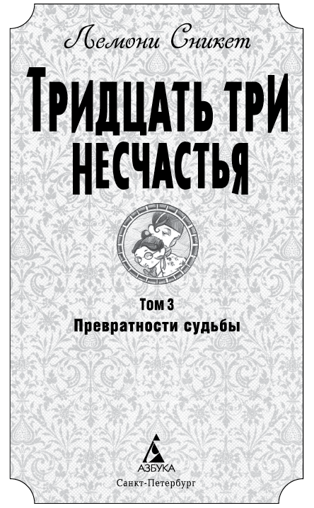 Тридцать три несчастья. Том 3 : Превратности судьбы : повести / Лемони Сникет; пер. с англ. Н. Рахмановой, А. Ставиской, А. Бродоцкой. — СПб. : Азбука, Азбука-Аттикус, 2019.