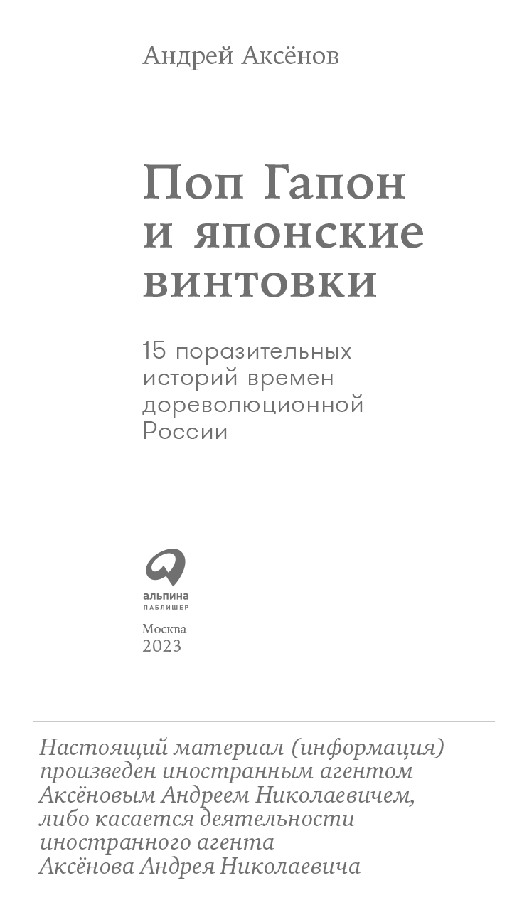 автордың кітабын онлайн тегін оқу Поп Гапон и японские винтовки: 15 поразительных историй времен дореволюционной России