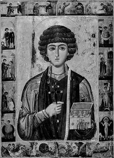 Святой великомученик Пантелеимон с житием. Икона. XIII в.