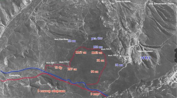 В это время не утихали сражения и вокруг Севастополя, где в 3 секторе оборонительного района противоборствовали немецкая 24 пехотная дивизия вермахта и войска Приморской армии, усиленные подразделениями, прибывшими с Кавказа.