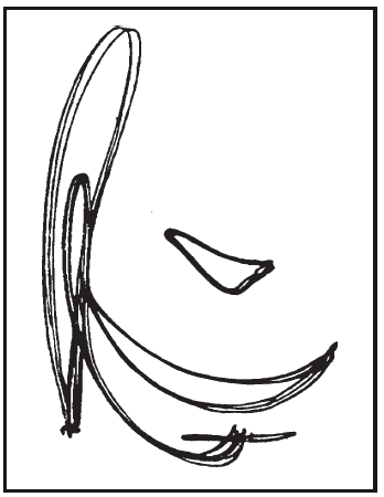 Произвольное движение по своей схеме оказывается значительно более устойчивым, чем мы могли бы предполагать, и с этой точки зрения оно оказывается не менее пригодным в качестве основного фона для изучения вносимых дезорганизацией поведения нарушений, чем любое непроизвольное движение; сомнения в его устойчивости могут отпасть при первом же анализе материалов. На рисунке 1 мы приводим циклографическую запись трех движений удара, сделанную на одной и той же фотографической пластинке. Мы нарочно взяли пример довольно сложного произвольного движения, в котором могли бы ожидать максимальной вариативности и неустойчивости его формы; однако эта иллюстрация показывает нам, что дело обстоит совершенно иначе: три сложных произвольных движения оказываются совершенно идентичными по схеме, по своему построению и так накладываются друг на друга, что мы оказываемся часто почти не в состоянии различить их на одной записи. Те незначительные отступления, которые мы находим между траекториями этих трех движений, нас ничуть не смущают, потому что они являются не нарушением схемы, а лишь незначительной вариацией в ее осуществлении, ничуть не изменяя основной «двигательной формулы».