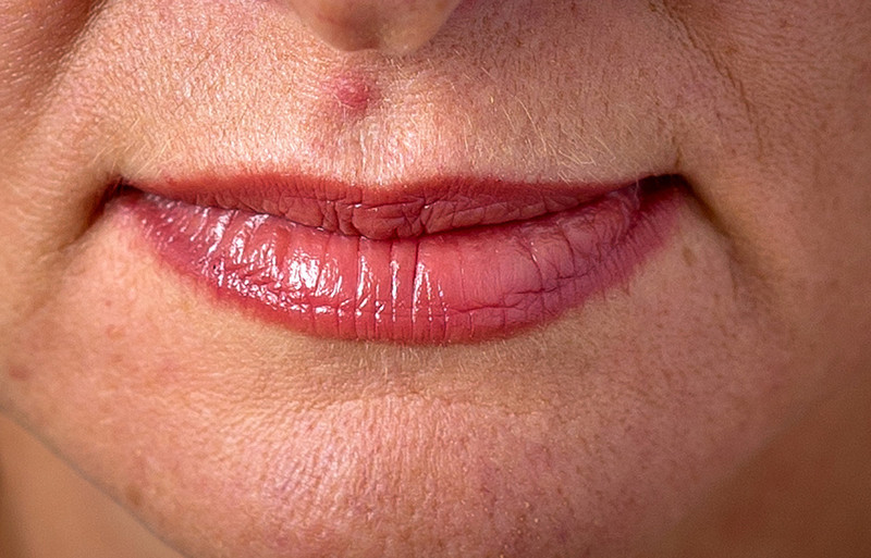 Фото 2а – типичный пример того, когда слишком хорошо – плохо! Для съемки поясного портрета был использован породистый портретный объектив. При полностью открытой диафрагме он дает очень мягкий рисунок при настолько небольшой глубине резкости, что, если навести фокус на ресницы, кончик носа поплывет, поры кожи на нем читаться не будут. В данном случае губы резкие, а линия подбородка уже размыта. Наводка резкости вручную при открытой диафрагме без автофокуса становится рискованной – легко получить нерезкую картинку. Автофокусу тоже едва-едва хватает контрастности, чтобы уверенно работать. Опасность получить брак становится очевидной, при заказной съемке это непростительный грех. Поэтому приходится слегка зажимать диафрагму и увеличивать глубину резкости. И тут деликатный портретник неожиданно обнаруживает способность снимать с бескомпромиссной резкостью, тщательно прорисовывая все подробности: мельчайшие вертикальные морщинки, красноватые пятнышки, мелкие волосики. Словом, все то, чего мы обычно не замечаем, когда имеем дело с хорошо знакомыми людьми.