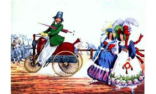 Первый автомобиль повторял форму привычной коляски. Паровой двигатель этого автомобиля был расположен впереди в специальном кожухе, выполненном в форме… крупа лошади. Интересно, что и управление этой машиной осталось традиционным. Повороты осуществлялись с помощью привычных… вожжей. Посмотрите на карикатуру того времени (рис. 1.6).
