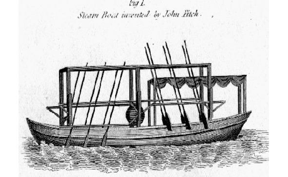 Первый пароход изобретенДжоном Фитчем в декабре 1786 г