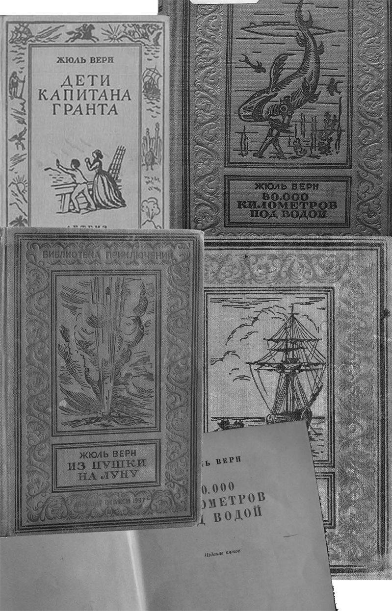Обложки книг Жюля Верна выпущенные в 1937, 1948, 1951 годах.