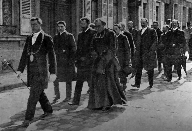 Погребальная процессия которую возглавляют сын и внук писателя. 1905.