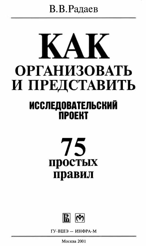 Р 15 Как организовать и представить исследовательский проект: 75 простых правил. — М.: ГУ-ВШЭ: ИНФРА-М, 2001.