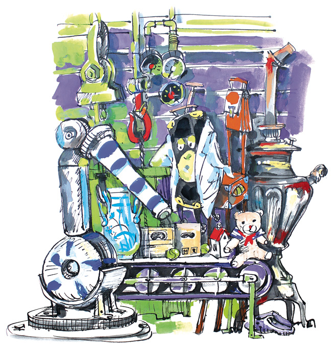 Большой-пребольшой чемодан, чёрный, с секретным замком, на четырёх колёсиках, жил в отдельной квартире многоэтажного дома и ходил на работу. Большой-пребольшой чемодан был настоящим учёным и изучал вместимость очень больших чемоданов: он помещал в себя разные вещи и смотрел, что из этого выйдет.