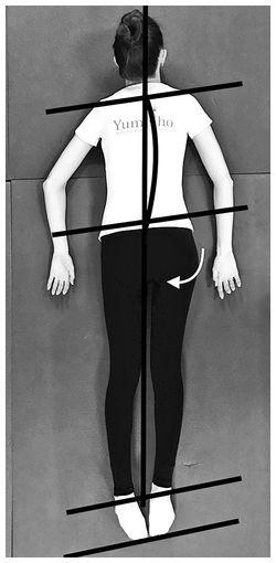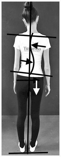 При нормальном положении линия, соединяющая верхнюю часть крыльев подвздошных костей, должна быть параллельна линии плеч и линии, соединяющей нижние углы лопаток, как в положении стоя, так и в положении лежа (фото 1).