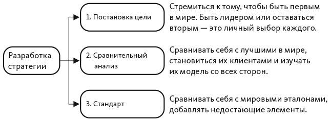 Неверно! Хорошая стратегия начинается с конечной цели: начальная точка является конечной. Ваш бизнес должен с первых дней соответствовать мировому уровню. Вы должны смотреть на настоящее через призму будущего, распределять ресурсы в соответствии с мировыми стандартами, так как стандарты регулируют весь процесс распределения ресурсов. Таким образом, отправная точка вашего бизнеса равна конечной точке. С самого начала вы должны ориентироваться на лучшие мировые стандарты. В противном случае вы, возможно, не сможете стать даже номером один в районе, не говоря уже о мировом первенстве.