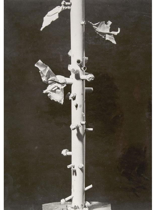 Дополнительные краски придают рассматриваемому «сюрреалистическому сюжету» факты из не известного ранее письма Юдина Константину Рождественскому от 9 августа 1936 года18. Оказывается, мимо внимания Юдина не прошла важнейшая акция движения — «Сюрреалистическая выставка объектов», о которой он узнал из специального номера любимого журнала Cahiers d’Art. Пополняется список имен: кроме упомянутых в дневниках, появляются Марсель Дюшан, Ман Рэй, Сальвадор Дали (ключевые!), Александр Кальдер. Юдинские суждения свидетельствуют не о скользящем восприятии, а об углублении в проблематику, о понимании задач и целей: он пишет о созданных моделях и выставленных реальных вещах как носителях сюрреалистического ощущения, отмечает, что «подбирают они [художники-сюрреалисты] себе элементы чрезвычайно точно». Оценивает причины того, что «носятся» с Дюшаном: «очевидно, много идей пошло от него». Совершенно справедливо выделяет Мана Рэя: «очень интересные фото (с моделей собственных)». Более того, прямо говорит о близости к ним своих фотографий, на которых запечатлены уже юдинские «собственные модели» — причудливые, странные бумажные скульптуры (колонны, мачты)19. «Увидишь и поразишься», — пишет он Рождественскому. Выше я уже говорила о родстве и самих этих объектов, и их «фотографической обусловленности» с поэтикой сюрреализма, однако то была все-таки гипотеза. И вот оно, документальное подтверждение, что дорогого стоит! Процесс фотографирования имел у Юдина творческий, а не фиксационный характер: тогда фигурки, по мнению самого Юдина, представали «объективизированными», осуществленными20. Отпечатки, как и у Мана Рэя, тоже были оригиналами21. Самое любопытное, что эта близость — следствие не заимствования, а параллельности в развитии, общности в направлении мыслей. Судя по всему, Юдин был удивлен подобным совпадением: он называет его «забавным» и радуется, что «опубликовал их [свои фотографии] до того, как в городе появился этот номер»22.