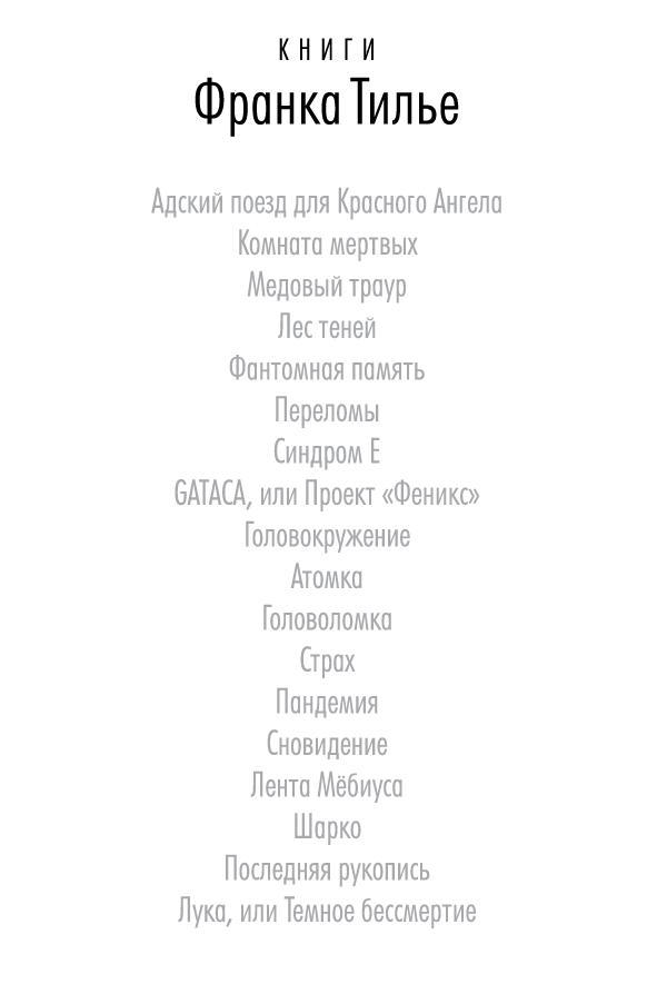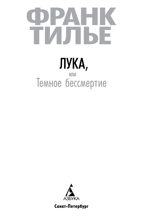 Лука, или Темное бессмертие : роман / Франк Тилье ; пер. с фр. Р. Генкиной. — СПб. : Азбука, Азбука-Аттикус, 2020. — 480 с. — (Звезды мирового детектива).