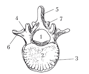 Каждый позвонок устроен довольно сложно. Его анатомия отображена на рисунках 1 и 2.