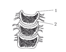Рис. 9. Форма тел шейных позвонков в прямой проекции. 1 – крючок тела позвонка; 2 – межпозвоночный диск