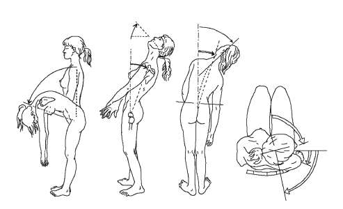 Рис. 10. Возможные варианты изгибов и вращений позвоночного столба в норме. Размер движений между двумя соседними позвонками очень мал, однако сумма небольших амплитуд позволяет осуществлять в пространстве движения достаточно большого объема