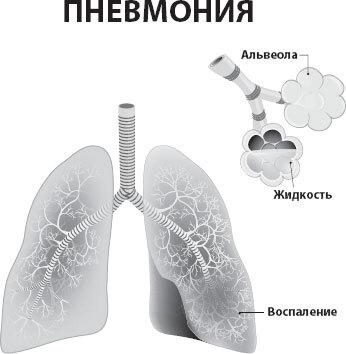 В легкие, которые представляют собой структуру воздушных мешочков, где происходит газообмен, приходят бактерии, и на этих бактерий набрасываются клетки воспаления. Это приводит к формированию инфильтрата, в результате чего клетки крови переходят внутрь альвеол. И во время борьбы с бактериями легкие в одном месте заполняются плотной жидкой средой.