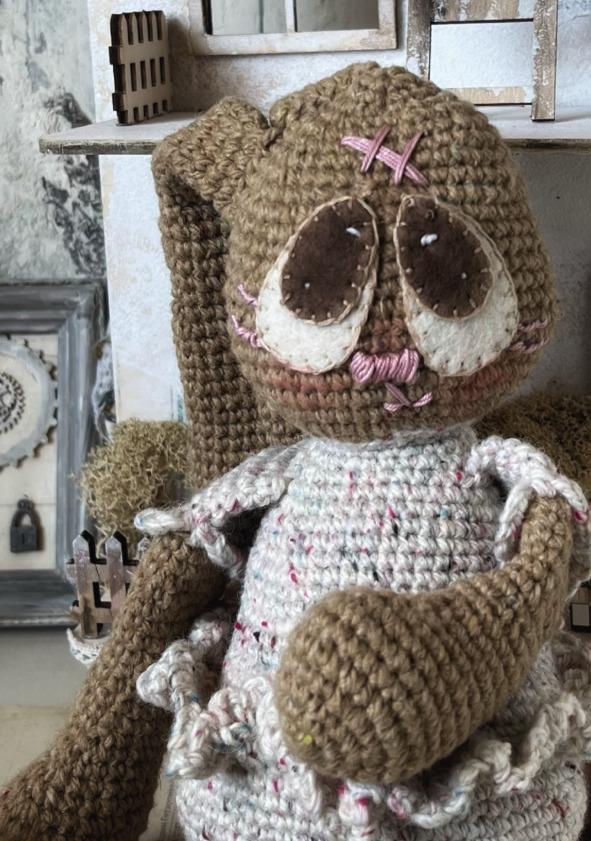 Зая связана из грубой пряжи Re-born, крючок 2 мм
