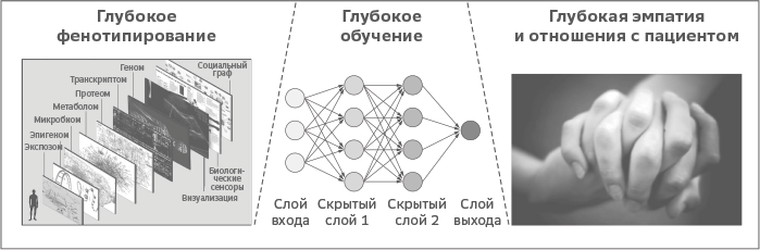 Эта книга описывает следующую после оцифровки и демократизации фазу — и имеет очень далекоидущие цели. Возможно, на вас производит определенное впечатление мой интерес к новым технологиям, однако на самом деле я всегда мечтал и мечтаю о возрождении истинно гуманистического элемента медицинской практики. С глубоким обучением мы получим некий остов, каркас, что позволит нам питать корни медицины, — это будут узы, связывающие человека с человеком. Несмотря на то, что мы пока полностью не добились ни оцифровки, ни демократизации медицины, все же и то и другое медленно, но неуклонно завоевывает позиции, и я верю, что нам удастся не только завершить этот процесс, но и привнести в самое сердце медицины искусственный интеллект. Кульминацией этого процесса и станет то, что я называю «истинная медицина».