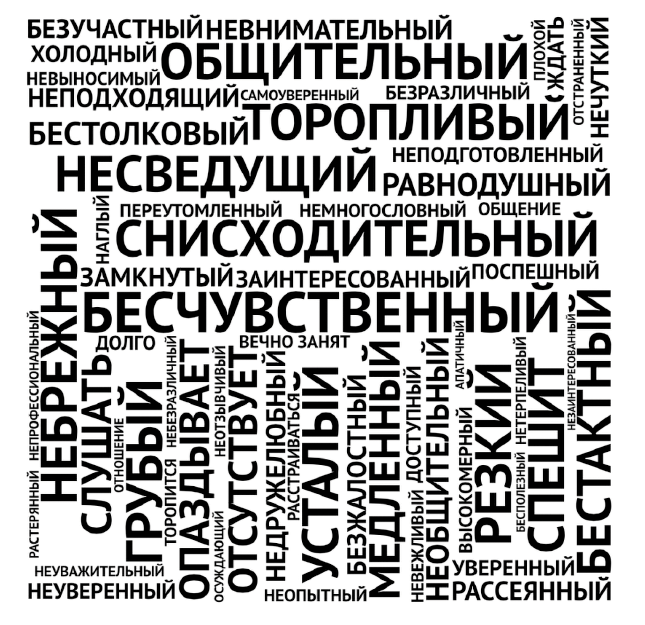 Но даже и без начальственного диктата вся медицинская практика на индивидуальном уровне устроена так, что подталкивает к неадекватной диагностике. Средняя продолжительность амбулаторного приема для пациента, явившегося на повторный осмотр, составляет семь минут, на нового пациента отводится 12 минут. Это абсурдное ограничение во времени свойственно не только США. Когда я был в медицинском центре компании Samsung в Южной Корее, администраторы сказали мне, что прием врача в этом центре длится в среднем две минуты. Стоит ли в подобной ситуации удивляться такому множеству ошибочных диагнозов? Как пациенты, так и сами врачи убеждены, что медики слишком спешат. Недавно сотрудники медицинского центра Алабамского университета в Бирмингеме попросили пациентов двумя словами описать их лечащих врачей [8]. Результат, наглядно представленный в виде облака слов, приведен на рис. 2.1. Содержание рисунка говорит само за себя.