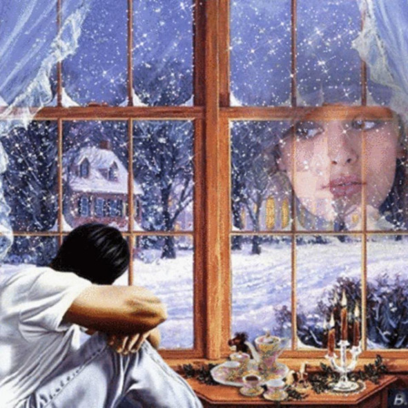 Кухня, окно на предпоследнем этаже, видно облака, возле холодильника сидят два ангела. Один с белыми волосами, а второй с черными. И перед одним из них разбросаны фантики от конфет.