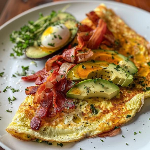 1. Кето Омлет с Беконом и Авокадо