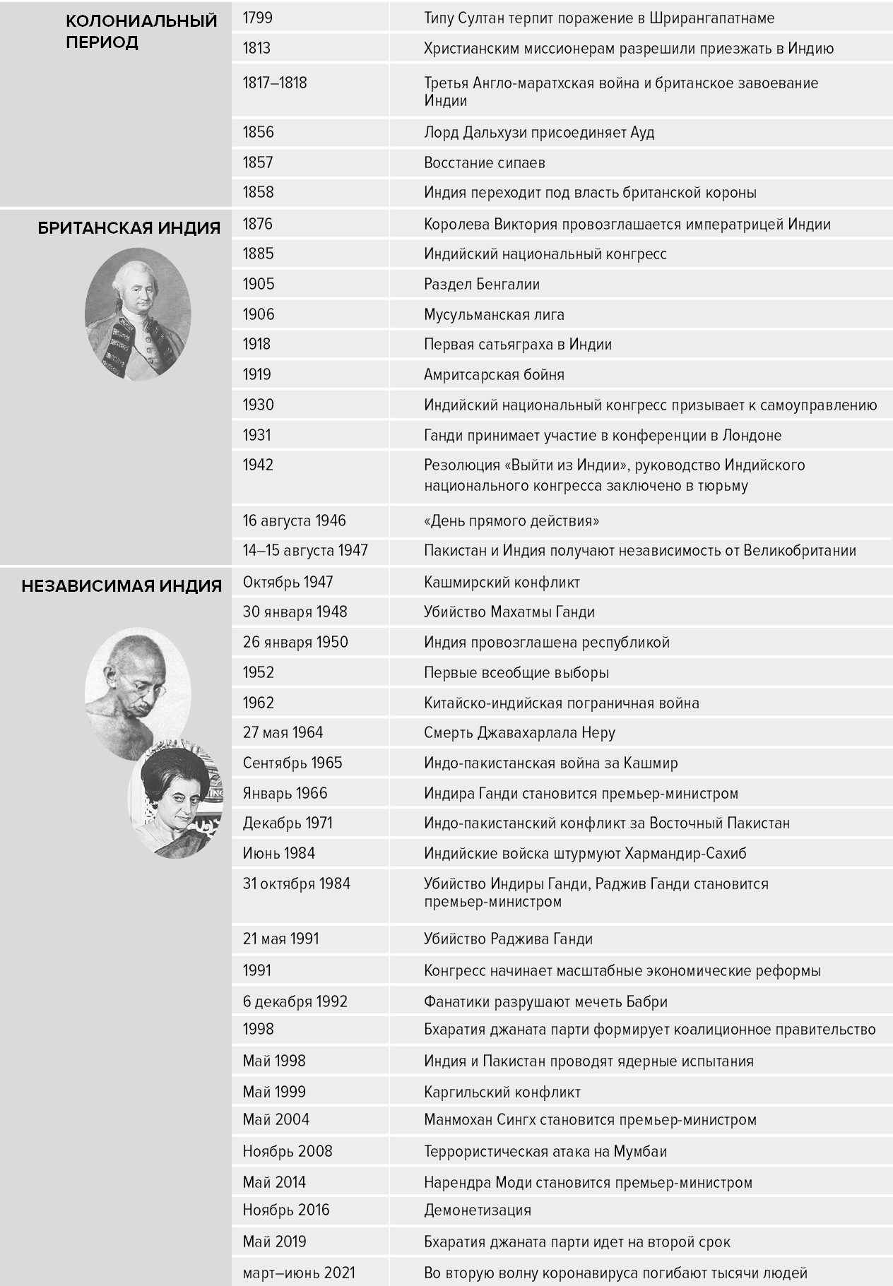 В отличие от истории Китая, которую можно четко разделить на периоды правления династий, таких как Юань, Мин или Цин, прошлое Индии пестрит множеством центров власти, отчаянно боровшихся между собой. Даже во времена высшего расцвета империи ни одна из трех великих индийских империй — Маурьев, Гуптов и Моголов — не контролировала весь субконтинент. И даже Британия не могла сделать подобное заявление до самого разгрома Маратхов в 1818 году. Но и тогда государства-княжества, на которые приходилась треть населения, сохраняли некоторую номинальную независимость.