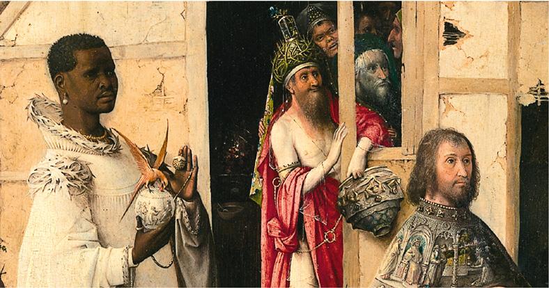 8. Чернокожие юноши, похожие на слугу третьего волхва, встречаются у Босха на центральной панели «Сада земных наслаждений». Там они напоминают о расовом разнообразии потомков Адама (Wirth 1988. P. 581; Bindman, Gates 2010 II. P. 263–268, Fig. 248–253; Stoichita 2014. P. 45–47).