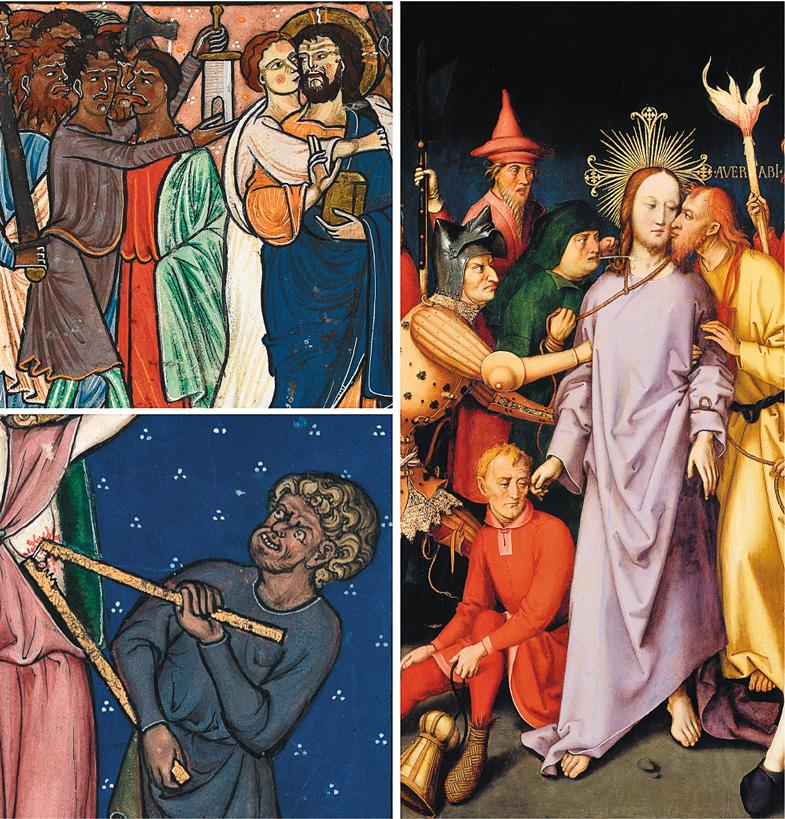 Некоторые из деталей таких изображений приобретали негативное значение лишь в определенных контекстах. Так, хорошо известно, что с XIII в. Иуду Искариота и иудеев часто изображали в желтых одеждах, поскольку желтый цвет ассоциировался с иноверием, предательством и безумием. Однако злодеев, конечно же, одевали не только в желтый, а желтая туника или желтый плащ необязательно указывали на то, что их обладатель — злодей. В тот же цвет могли быть выкрашены одеяния ангелов или св. Петра — первого из апостолов. Для того чтобы разобраться в символике цвета, важно смотреть не на одного персонажа, а на всю гамму, которую использует тот или иной мастер при изображении позитивных, негативных и нейтральных фигур, а также присматриваться к оттенкам (скажем, негативным знаком мог быть не любой желтый, а только «грязный», отдающий в красный или зеленый)3.