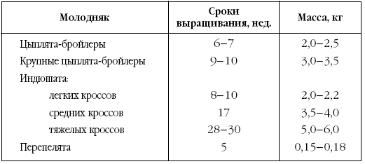 Сроки выращивания и конечная живая масса молодняка сельскохозяйственной птицы