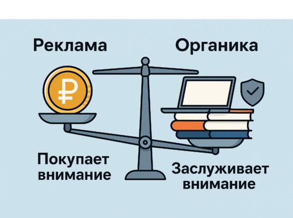 • Реклама продаёт, органика формирует лояльность.