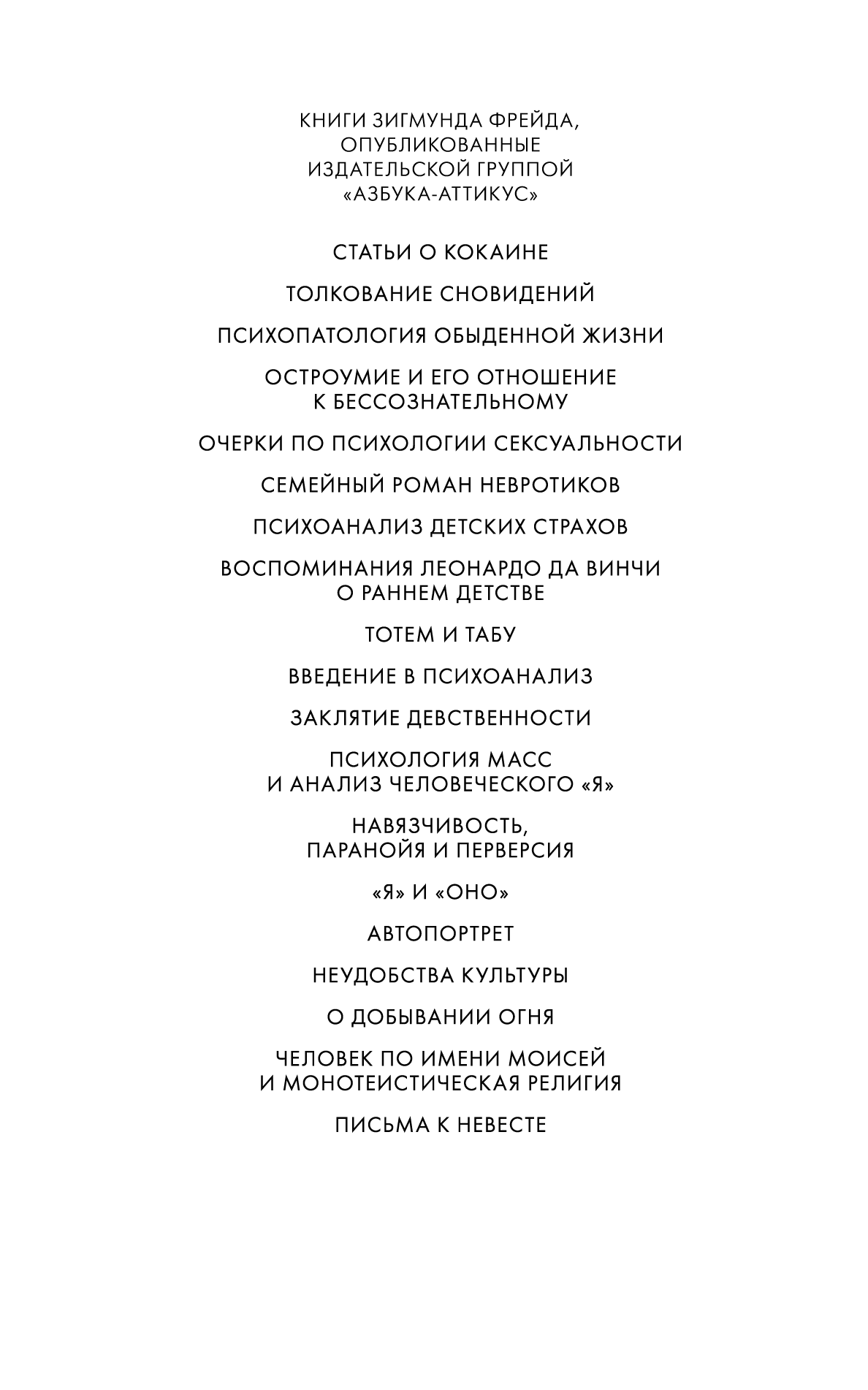 «Психопатология обыденной жизни», впервые изданная в 1901 году, — ранняя книга Зигмунда Фрейда, крайне популярная у широкой публики. Эта работа стала одной из важнейших в его научной биографии и одной из ключевых в истории психоанализа; Жак Лакан считал ее одним из важнейших в истории трудов для понимания бессознательного. Здесь Фрейд на многочисленных примерах, почерпнутых главным образом из собственной жизни или жизни коллег и друзей, убедительно демонстрирует, как случайные, казалось бы, ошибки — оговорки, ослышки, забывание имен, запрятывание предметов, мелкие несуразные поступки и так далее — приоткрывают нам то, что таится на глубине в нашем бессознательном: наши вытесненные желания. В мире, где способность к рефлексии и честность с собой встречаются реже, чем хотелось бы, эта книга, увлекательная и беспристрастная, остается непременным чтением для любого, кто готов посмотреть в себя и встретиться взглядом с собственным «я».