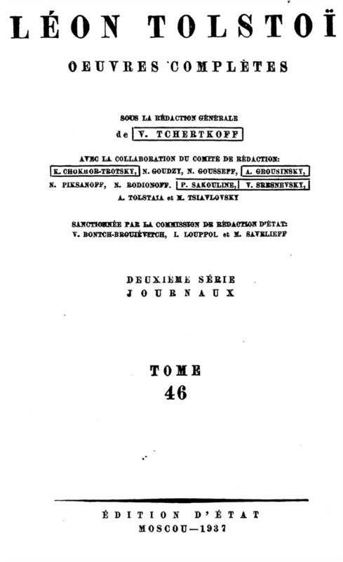 Редакция Юбилейного издания просит всех лиц, обладающих текстами записных книжек Толстого или знающих об их местонахождении, сообщить об этом Редакции.