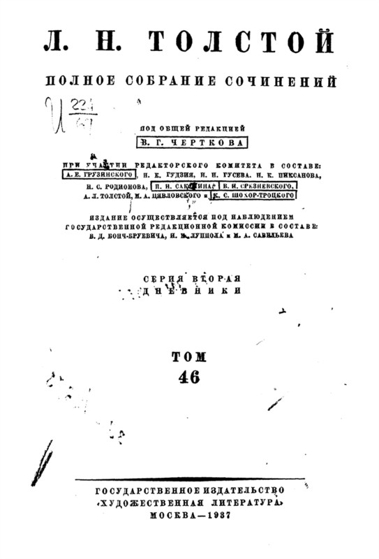 Полного собрания сочинений Л. Н. Толстого, предоставленной