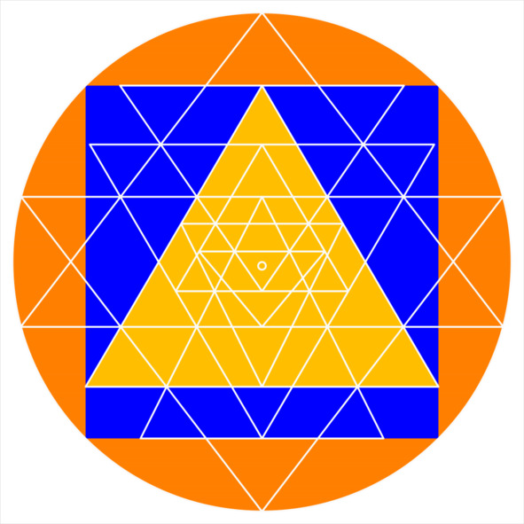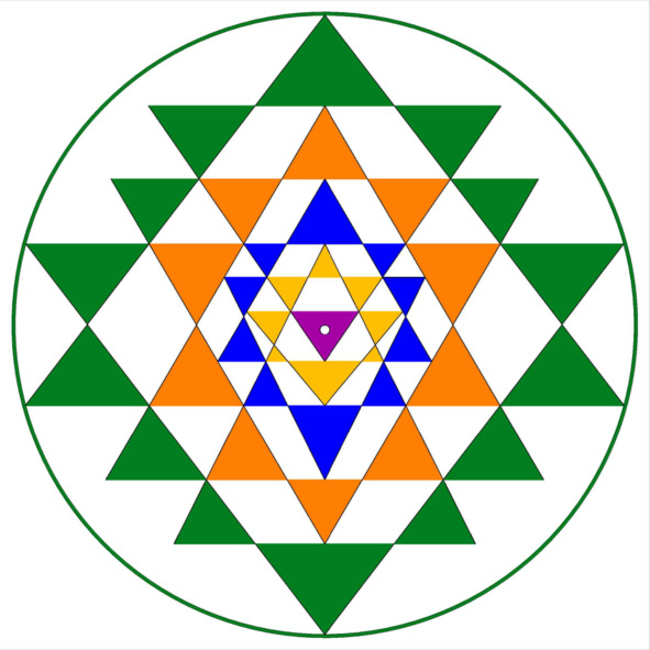 Рис. 5. Центральное ядро Шри Янтры с шестью вершинами треугольников, лежащими на окружности. Цветовое решение