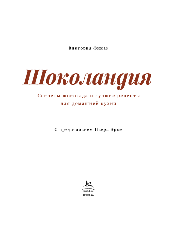 Шоколандия : Секреты шоколада и лучшие рецепты для домашней кухни / Виктория Финаз ; [пер. с фр. М. Михновой]. — М. : КоЛибри, Азбука-Аттикус, 2022.