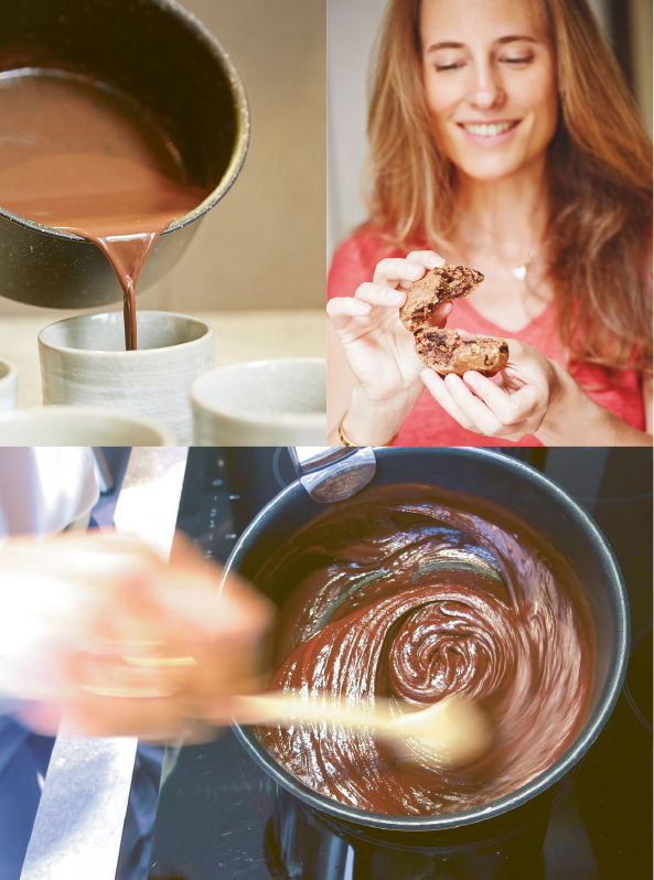 Сколько я себя помню, в семье меня всегда называли Мисс Шоколад. Страсть к шоколаду передалась мне от прадедушки по отцовской линии, который был шоколатье в Лионе, и от отца, которому удавалось раздобыть невероятно ароматные плитки у лучших шоколатье. С восьми лет я готовила фонданы и шоколадные муссы, ставшие теперь моими базовыми рецептами. А на Рождество обожала помогать бабушке по материнской линии наламывать плитки в кастрюлю, чтобы приготовить горячий шоколад, который она по традиции подавала после полуночной мессы, когда все собирались у камина.
