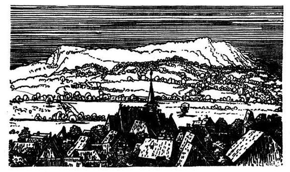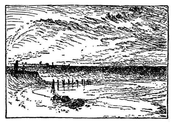14. But it will not be in your power yet awhile to draw from any objects in which the gradations are varied and complicated; nor will it be a bad omen for your future progress, and for the use that art is to be made of by you, if the first thing at which you aim should be a little bit of sky. So take any narrow space of evening sky, that you can usually see, between the boughs of a tree, or between two chimneys, or through the corner of a pane in the window you like best to sit at, and try to gradate a little space of white paper as evenly as that is gradated—as tenderly you cannot gradate it without color, no, nor with color either; but you may do it as evenly; or, if you get impatient with your spots and lines of ink, when you look at the beauty of the sky, the sense you will have gained of that beauty is something to be thankful for. But you ought not to be impatient with your pen and ink; for all great painters, however delicate their perception of color, are fond of the peculiar effect of light which may be got in a pen-and-ink sketch, and in a wood-cut, by the gleaming of the white paper between the black lines; and if you cannot gradate well with pure black lines, you will never gradate well with pale ones. By looking at any common wood-cuts, in the cheap publications of the day, you may see how gradation is given to the sky by leaving the lines farther and farther apart; but you must make your lines as fine as you can, as well as far apart, towards the light; and do not try to make them long or straight, but let them cross irregularly in any directions easy to your hand, depending on nothing but their gradation for your effect. On this point of direction of lines, however, I shall have to tell you more, presently; in the meantime, do not trouble yourself about it.