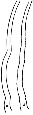 11. Possess yourself therefore of any cheap work on botany containing outline plates of leaves and flowers, it does not matter whether bad or good: Baxter's British Flowering Plants is quite good enough. Copy any of the simplest outlines, first with a soft pencil, following it, by the eye, as nearly as you can; if it does not look right in proportions, rub out and correct it, always by the eye, till you think it is right: when you have got it to your mind, lay tracing-paper on the book; on this paper trace the outline you have been copying, and apply it to your own; and having thus ascertained the faults, correct them all patiently, till you have got it as nearly accurate as may be. Work with a very soft pencil, and do not rub out so hard[2] as to spoil the surface of your paper; never mind how dirty the paper gets, but do not roughen it; and let the false outlines alone where they do not really interfere with the true one. It is a good thing to accustom yourself to hew and shape your drawing out of a dirty piece of paper. When you have got it as right as you can, take a quill pen, not very fine at the point; rest your hand on a book about an inch and a half thick, so as to hold the pen long; and go over your pencil outline with ink, raising your pen point as seldom as possible, and never leaning more heavily on one part of the line than on another. In most outline drawings of the present day, parts of the curves are thickened to give an effect of shade; all such outlines are bad, but they will serve well enough for your exercises, provided you do not imitate this character: it is better, however, if you can, to choose a book of pure outlines. It does not in the least matter whether your pen outline be thin or thick; but it matters greatly that it should be equal, not heavier in one place than in another. The power to be obtained is that of drawing an even line slowly and in any direction; all dashing lines, or approximations to penmanship, are bad. The pen should, as it were, walk slowly over the ground, and you should be able at any moment to stop it, or to turn it in any other direction, like a well-managed horse.