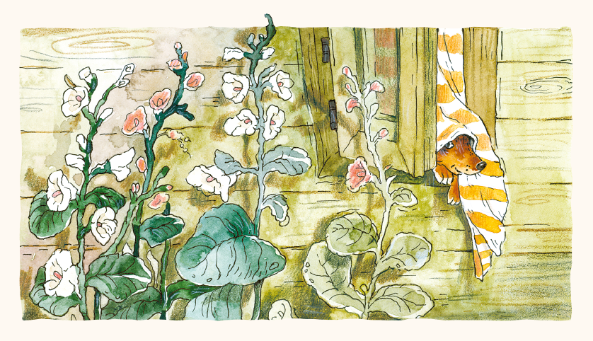 К ак только дедушка и Вовкины родители отправились на вокзал и скрылись за воротами, маленькое банное окошко скрипнуло и из-за шторки показался мокрый собачий нос. Немного погодя появилась и вся голова Борьки, с чёрными, очень хитрыми глазками. Такса карабкалась, изо всех сил пыталась протиснуться через маленькую щель полуоткрытого окна. Но застряла где-то на середине и, повиснув над кустом мальвы, запаниковала.
