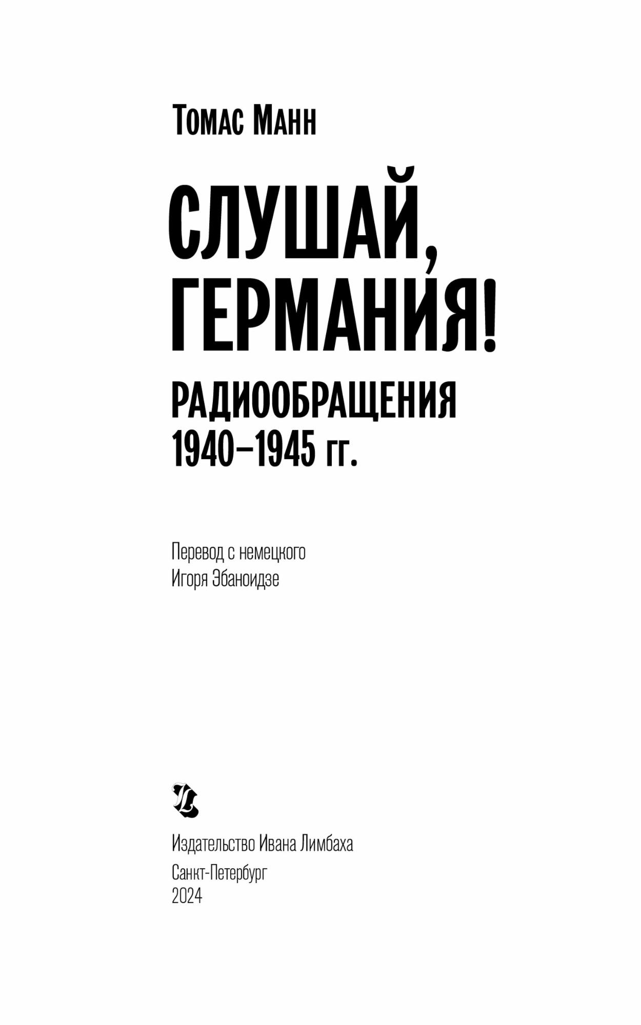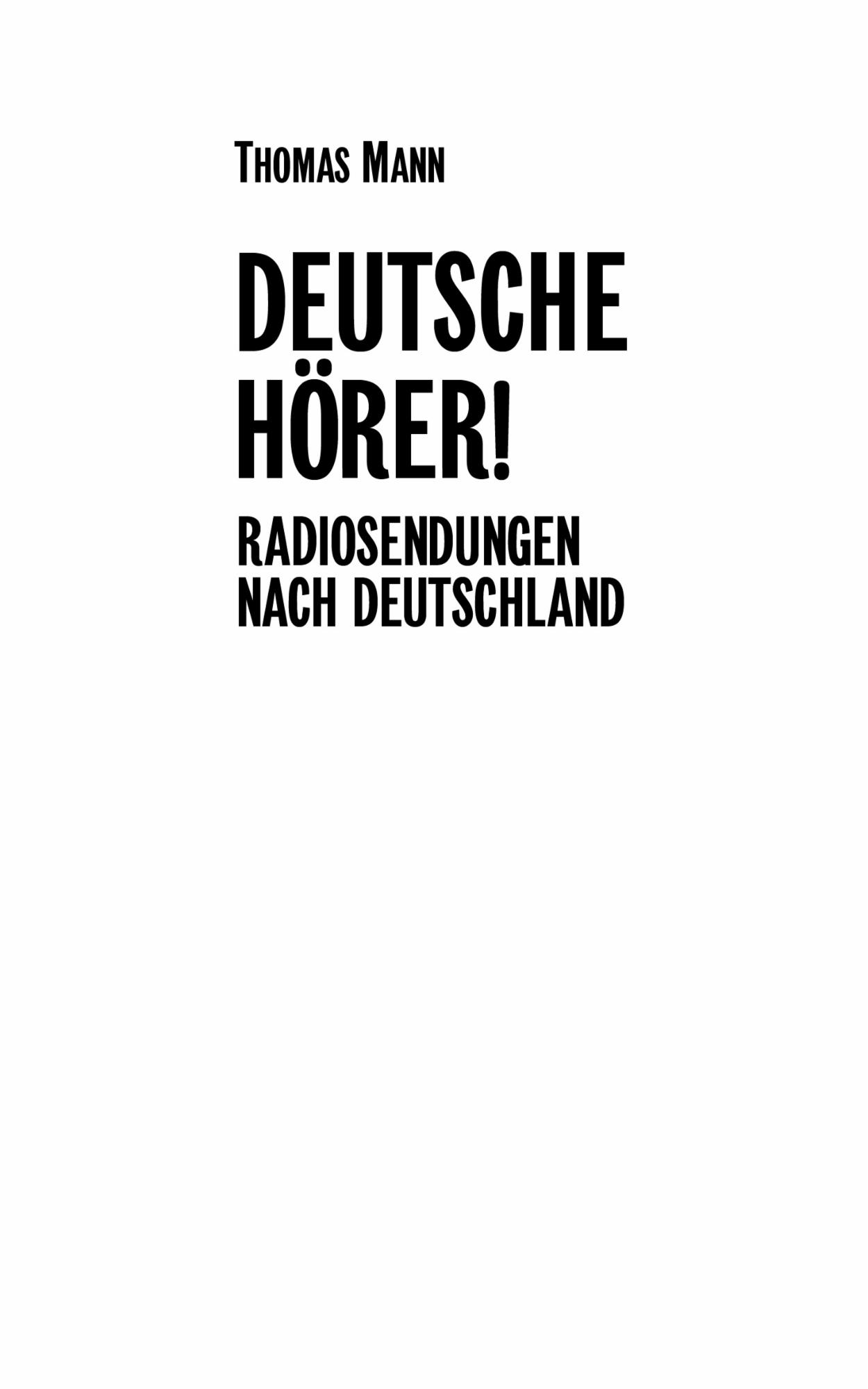 В эту книгу вошли тексты, с которыми выдающийся немецкий писатель Томас Манн в годы Второй мировой войны обращался из эмиграции к своему народу. Статья «Эта война…» была напечатана весной 1940 года отдельной брошюрой в Голландии и, возможно, какое-то число экземпляров могло полулегальным образом быть переправлено в Германию. Однако почти в те же дни в Нидерланды вошли немецкие войска, и тираж брошюры был уничтожен оккупантами. А беспримерный радиопроект «Слушай, Германия!» длился пять лет. За это время писатель передал на родину через BBC пятьдесят восемь радиообращений — все они без исключения и сокращений публикуются в этом издании.