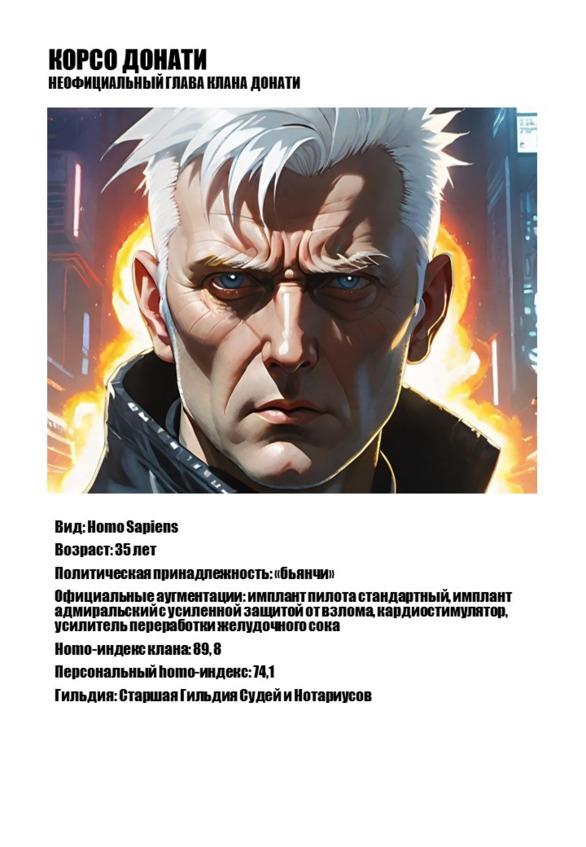 Сосуществовать с ларами нелегко. Но только они помогают Станции сохранять независимость и от Высокого Престола Романы, и от Империума. Те были бы рады подмять нас под себя — но лары Станции бесполезны без людей Станции, и от нейросетей Станции нет толку без людей, которые их обслуживают. Это издревле исключало прямой военный конфликт — но выливалось в бесконечные интриги, в непрерывные попытки сверхдержав склонить Старые Семьи на свою сторону, в непрерывные попытки Старых Семей выторговать себе что-то путем ненадежных обещаний. И «бьянчи», сторонники Романы, и «нери», поклонники Императора, были бы рады избавиться от противников, получить единоличную власть над Станцией, наконец-то, установить единственно верный миропорядок — но пока никому не удавалось это сделать. Распря тянулась из поколения в поколение — тлея по углам, прорываясь пожарами и беспорядками, но не угасая. Кто-то продолжал надеяться, что однажды сможет прийти к власти. Кто-то — как мой отец — искал способа не потерять положения, кто бы к ней ни пришел.
