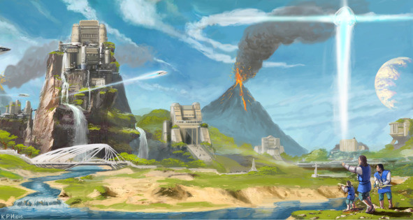 Теперь расскажу о нашей истории и нашей планете. Она называется Табур и по размерам в три раза больше Земли. У нас обитало множество представителей флоры и фауны, причем экземпляры намного крупнее земных. Но все же на Земле больше разнообразия животного мира. Табур покрыт и землей, и океанами с морями почти в равной степени. Мы развивались очень хорошо, и обладали высокоразвитой технологией, в нашем мире строили каменные города, величественные сооружения, что-то наподобие ваших семи чудес света, обладали огромными возможности в сфере науки и культуры в равной степени, строили летающие корабли, открывали различные виды энергии. Но были моменты, когда нашу планету посещали различные непрошеные гости из других систем. Намерения были у всех разные — и гостеприимные, и вражеские. Несколько раз мы участвовали в войне для защиты планеты, всег