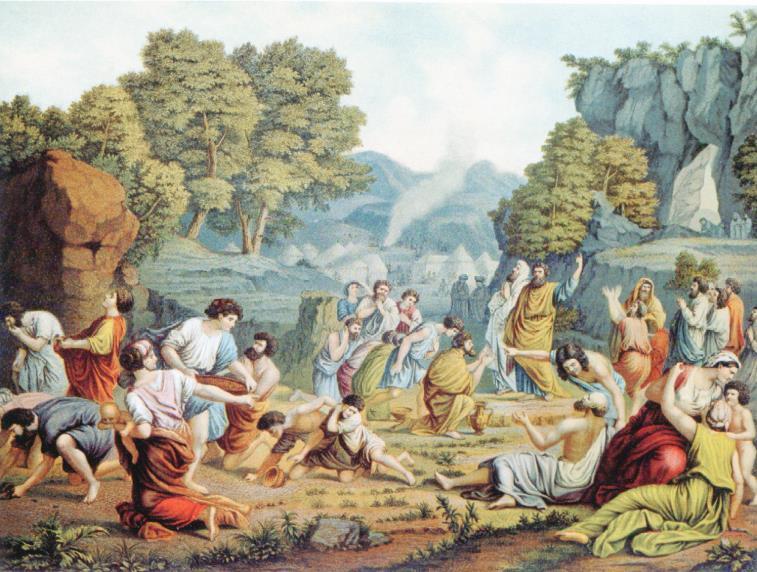Когда это было исполнено, Бог затворил двери ковчега, и начался потоп.