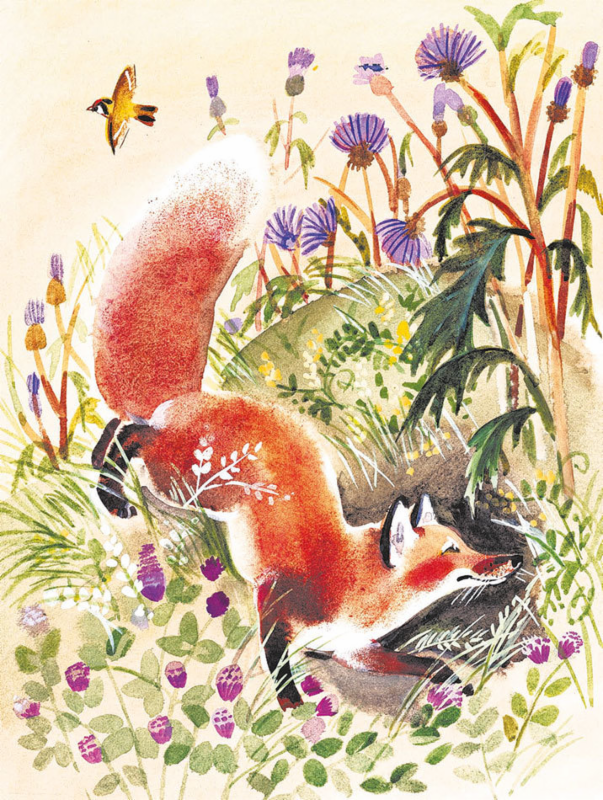 «Эх, – думает, – опоздала! Видно, он на земле, в кусту спал. Лисице, верно, достался».