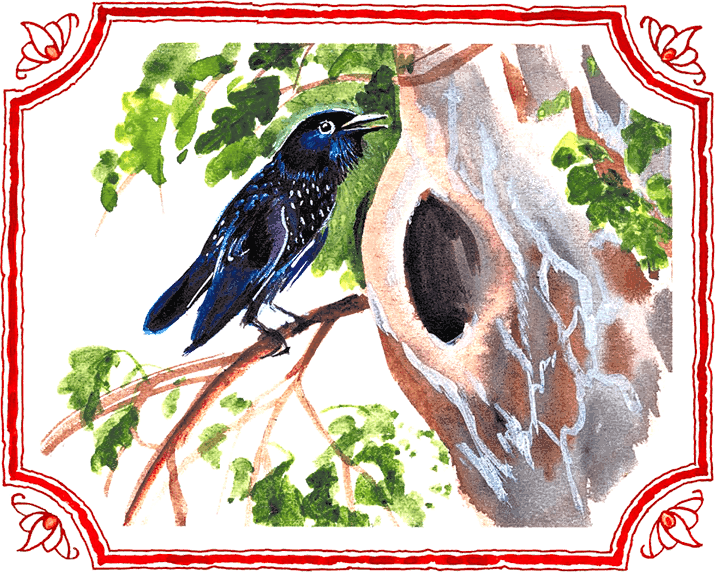 Узнал про то дупло Скворец. Прилетел. Видит – дуб, в дубу – дырка. Чем Скворцу не теремок?